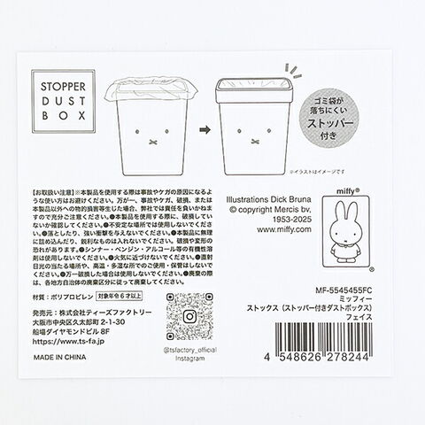 ミッフィー miffy フェイス ストックスストッパー付きダストボックス
