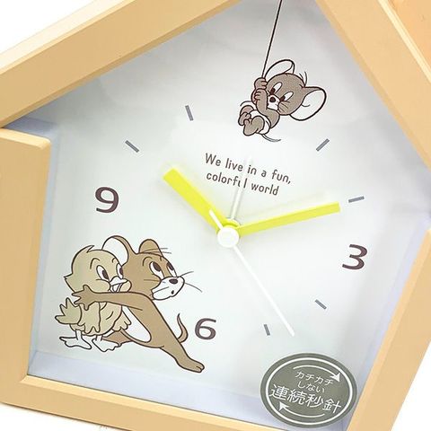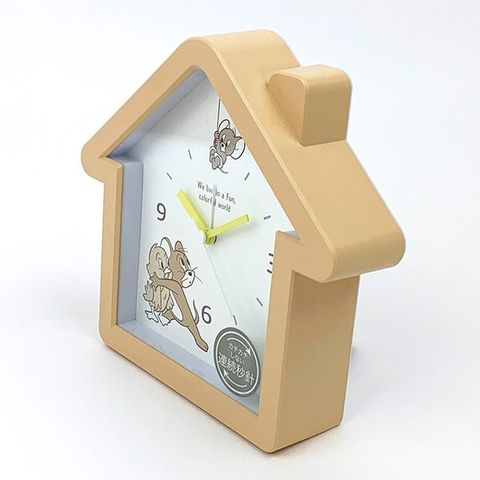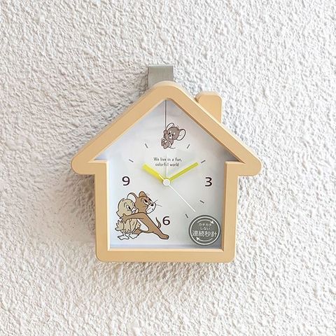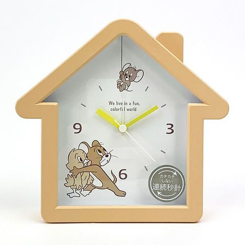 人気のハウス型クロックにトムとジェリーが登場♪くすみカラーでインテリアにもとても馴染みます。カチカチしない連続秒針。アラーム機能付き!【使用電池:単3形乾電池1本】