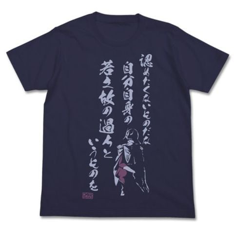 TV版ガンダム一話での、有名すぎる台詞をしみじみと味わえるTシャツ。片膝をついてたたずむシャアのグラフィックと印鑑風の文字が、あなた自身の若さゆえの過ちを呼び起こさせる一枚です。
