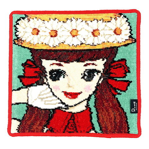 内藤ルネ カンカン帽の少女 シェニール織 タオル ハンカチ RUNE 日本製