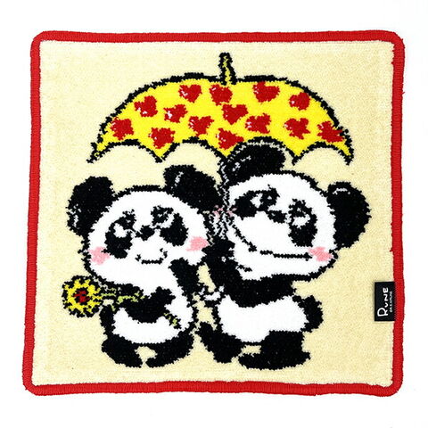 内藤ルネ 相合傘パンダ シェニール織 タオル ハンカチ RUNE 日本製