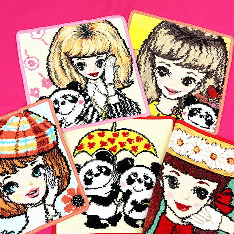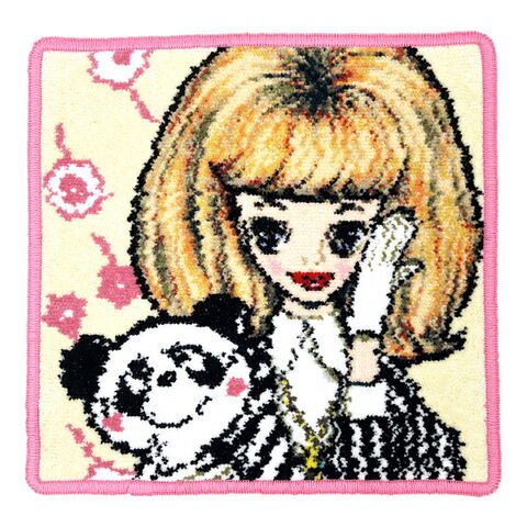 内藤ルネ こんにちは!マドモアゼルとパンダ シェニール織 タオル ハンカチ RUNE 日本製