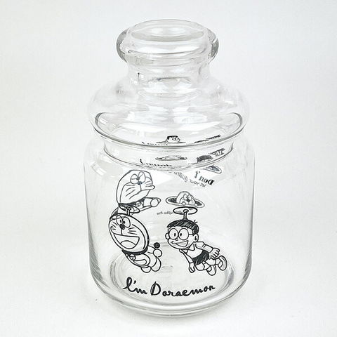 藤子・F・不二雄の不朽の名作、ドラえもんデザインのガラスキャニスターです。日常使いしやすいシンプルシリーズ。透明なガラス製の小物入れ。中身が見えるから、置いて飾るだけでもとってもおしゃれ。ドラえもんとおなじみのキャラがデザインされています。