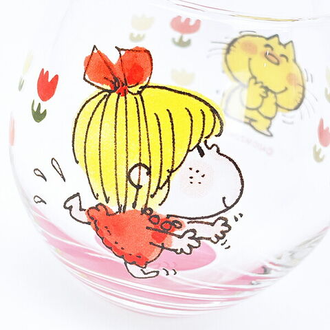 水森亜土の世界観がギュッと詰まっているデザインの丸グラスです。ジュースやお茶を入れてみるとまるでデザインが浮いているように見える♪専用の箱に入っているのでプレゼントにもおすすめです!カラー違いで男の子もございますので揃えても可愛いですよ♪