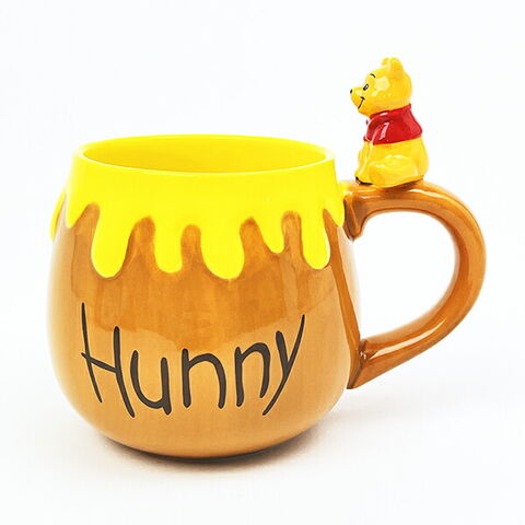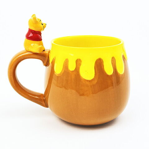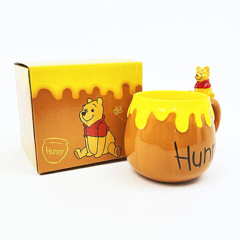 くまのプーさんのフィギュア付きマグカップです。はちみつの壺の形でコロンっとしたフォルムが可愛い~☆取っ手には可愛いフィギュア付きが嬉しいポイントです♪【容量:280ml】