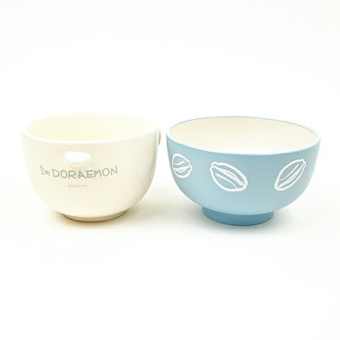 ドラえもんのかわいい汁椀茶碗セット。ご飯と汁物をよそって、ぜーんぶ食べ終わったらお椀をかぶせよう!!ミニサイズなのでお茶碗デビューするお子様にもピッタリです♪【サイズ】汁椀:W10×D10×H5.7cm、茶碗:W9×D9×H6cm