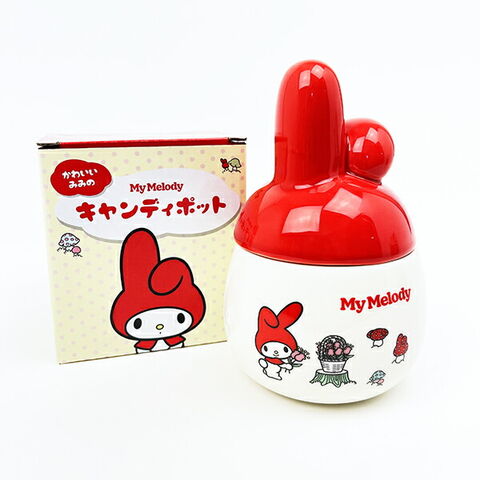 マイメロディの耳がそのまま立体的なふたになった可愛いキャンディポットです。コロンっとしたフォルムで飾ってもかわいいのでインテリアとしても◎お菓子や小物入れにぴったりです♪
