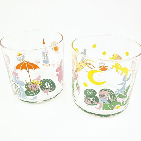 ムーミン80周年を記念したガラスタンブラーです♪普段使いにぴったりのサイズで、毎日のドリンクタイムを楽しく過ごせます♪80周年のバックスタンプ入りで、コレクションにもぴったり◎【容量:330ml】