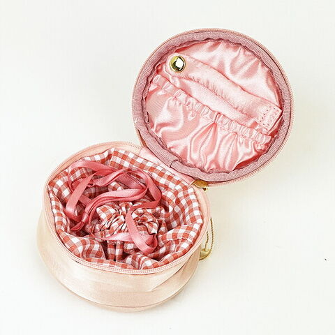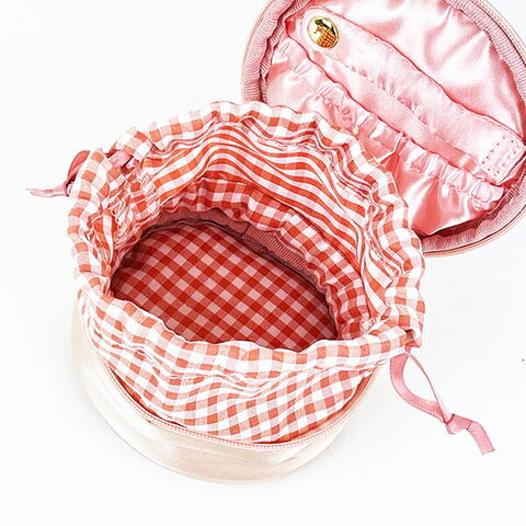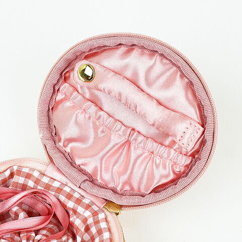 マイメロディの巾着アクセサリーポーチです。中が巾着になっているので、ヘアゴムやネックレスなどを入れても安心☆バッグに入れてもかさばらないので旅行やお出かけの際にアクセサリーの持ち運びに便利◎光沢感のあるサテン生地がとってもキュートです♪