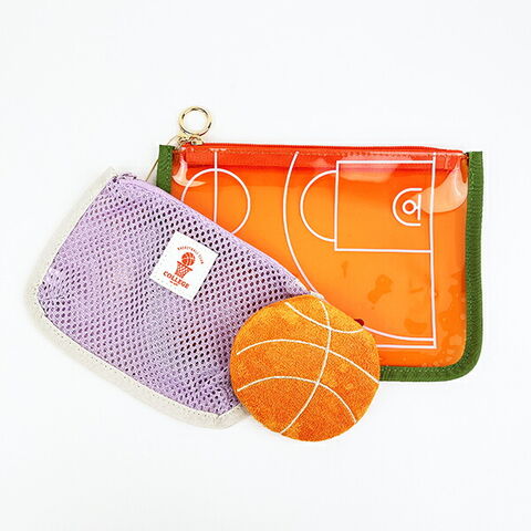 スポーツを3サイズのポーチにぎゅっと凝縮。フィールド/ネット/ボールを異素材MIXで組み合わせたポップなポーチセットです。ペンケースにしたり、旅行やお出かけの際の小物入れなどさまざまなものを入れるのに便利なサイズ感です◎アクスタやフィギュアを入れたり、シールでアレンジしたり推し活にもぴったり☆バスケ好きの方へのちょっとしたギフトにもおすすめです♪【サイズ】大:14cm×20.5cm、中:12cm×17cm、小:8cm×8cm