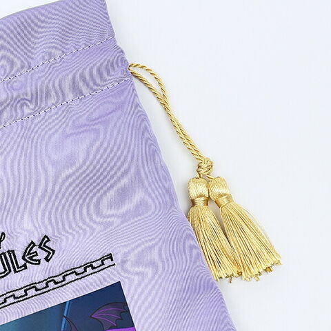 映画のワンシーンからピックアップしたアートを使用し、ヘラクレスの世界観たっぷりな巾着です。光沢のある生地とゴールドのタッセルを使用することで高級感◎裏地付きなのも嬉しいポイント★コスメやトラベルグッズなど、小物をまとめて収納するのに便利なサイズ感◎