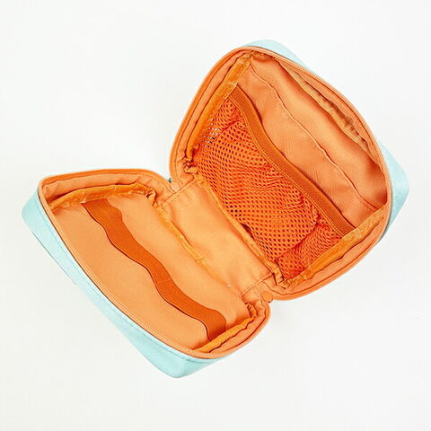 パステルの配色が可愛いガジェットポーチ!なかよしコンビのキャラクターたちは刺繍で表現♪内生地やファスナーテープもキャラクター刺繍と同じカラーリングに♪内側にはメッシュポケットにオープンポケット、コードなどをまとめて挟めるゴムバンド付きでガジェット類をスッキリ整頓。程よい綿入りでふんわり柔らかく、ダブルファスナーで大きく開閉できるので使い勝手も良き。ガジェット類だけでなく、コスメや小物などを収納するポーチとしても活用できます♪
