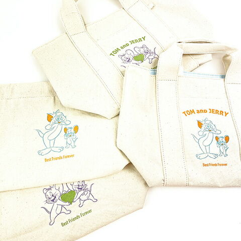 トムとジェリーのキャンバス地に2色で施したプリントがかわいいミニトートバッグです。2月10日のトムとジェリーのお誕生日をお祝いしているアートがかわいいバースデーシリーズ!裏地のチェック柄がおすすめのポイント☆ランチトートなどサブバッグにおすすめのサイズ感。前面ハンドル部分にはチャームが付けられるホルダー付きです♪