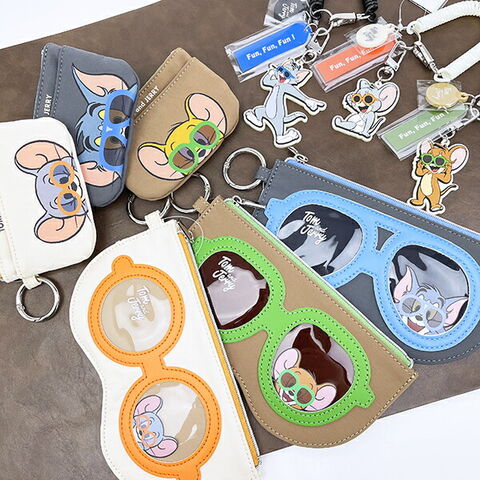サングラスをかけたトム、ジェリー、タフィーがひょっこり覗きこんでるようなコンパクトサイズのミニポーチです。カラビナ付きでバッグにも簡単に取り付けが可能!イヤホンやリップ、小さな鍵などバッグの中で無くなりがちな小物をまとめて収納可能◎