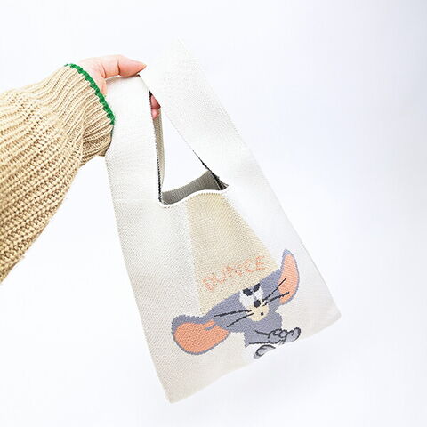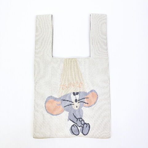 トムとジェリーの身軽に移動したいランチタイムやお散歩のお供にぴったりなニットバッグです。ちょっとクスッと笑えるアートをパステル調のかわいい色合いで編み上げました♪マチもあって収納力抜群です☆スマホ、お財布、メイクポーチ、飲み物など必要なものだけパッと入れて持ち運びできます♪お好きなキャラクターで揃えたり、ご家族で揃えても可愛い♪とってもキュートなシリーズなのでぜひ同デザインの巾着やハートポーチチャームと合わせてお使いください☆彡