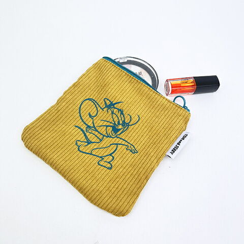 トムとジェリー(ジェリー)のフロッキー配色フラットポーチです。コスメやイヤホン、ケーブルなどの小物をまとめて入れておくのに◎同じデザインのトートバッグやラバーチャームがあるので統一すれば可愛さMAX♪トムとジェリーのフレンズシリーズなのでトムジェリ好きにはたまりません!!コーデュロイ生地との組み合わせでシンプルながらも温かみがあるのがポイントです☆彡