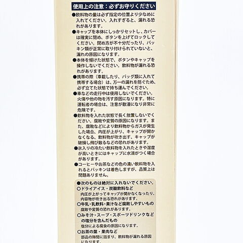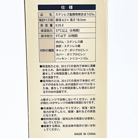 素材:材料の種類:内びん:ステンレス銅、胴部:ステンレス銅、キャップ、カバー、:ポリプロピレン、パッキン:シリコーンゴム