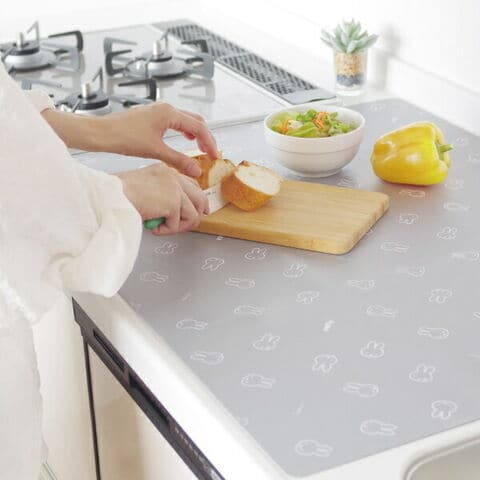 ミッフィーのシリコーン製調理台保護マットです。調理台を傷や汚れから守ります!シリコン製なので熱に強く防水仕様でお手入れもラクラク♪使用場所の形状にあわせてフリーカットOK!すべりにくいのでお料理もしやすく安心です☆キッチンがいつもより可愛くキレイになっちゃうなんてママさんたちは嬉しい♪賃貸なども安心してお使いいただけます!