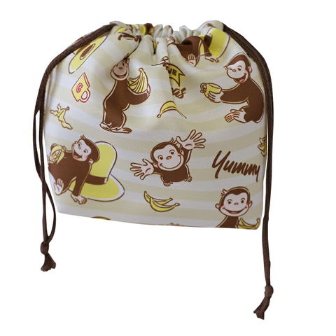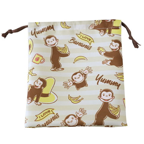 ジョージとバナナのデザインの総柄がかわいいランチ巾着♪お子さまの新入学の準備や洗い替え用としてはもちろん、大人の方にもおすすめです◎