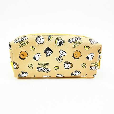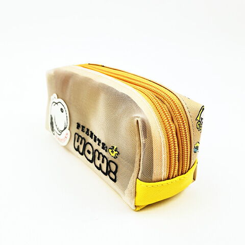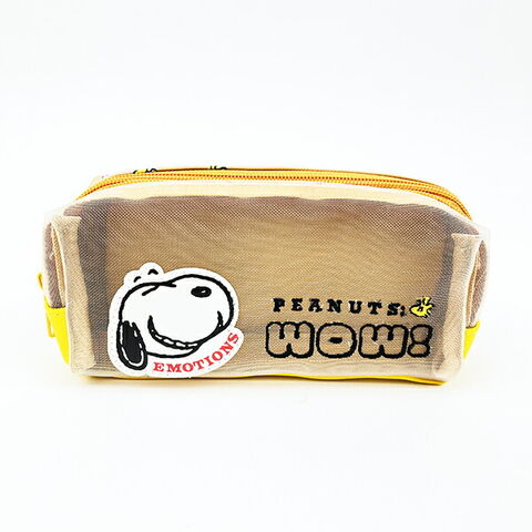 スヌーピー フェイス メッシュボックスポーチ 小物入れ ペンケース ベージュ SNOOPY