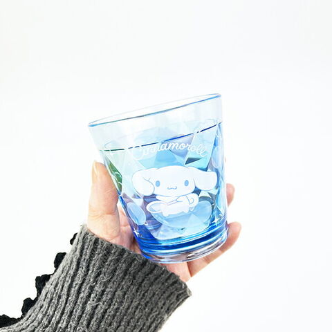 シナモロールのかわいいキラキラクリアカップ。内側がダイカット加工になっていてキラキラ光ってキレイ☆割れにくいので普段使いに◎