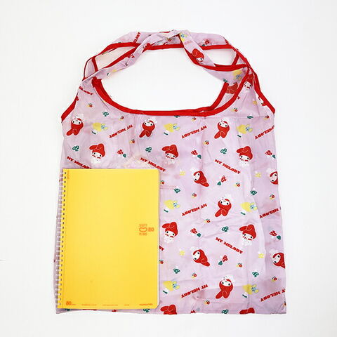 バッグの内側にデザイン入りの収納ポケット付き。小さく折りたたんでポケットに収納できます。カバンに入れておけば毎日のお買い物に大活躍♪ピンクカラーにマイメロディのチラシ柄がかわいい♪◆サイズ:約H570×W420×D140mm(ポケット収納時:約H120×W135×D20mm)