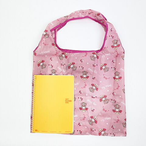 バッグの内側にデザイン入りの収納ポケット付き。小さく折りたたんでポケットに収納できます。カバンに入れておけば毎日のお買い物に大活躍♪赤地にマイメロディのチラシ柄がかわいい♪◆サイズ:約H570×W420×D140mm(ポケット収納時:約H120×W135×D20mm)