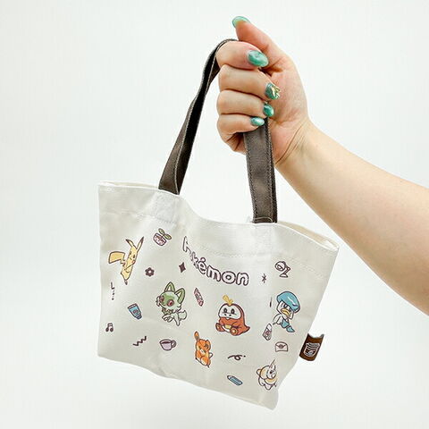ポケットモンスターのおでかけに便利なミニトートバッグです。表裏にさまざまなポケモンたちがデザインされていてポケモン好きにはたまりません☆ランチ用品を入れるのにちょうどいいサイズ感が◎取っ手の色合いが違うのがおしゃれです♪