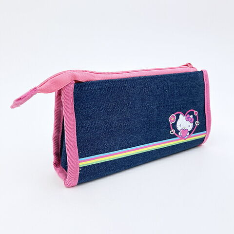 ハローキティのデニムポーチです。Y2Kテイストの懐かしくてかわいいデザインにキュンとしちゃいます♪ポーチとしてはもちろん、ペンケースとしても使えます☆持っているだけで気分が上がりそうな可愛いデザインなのでぜひお好きなキャラクターをお迎えしてあげてください♪