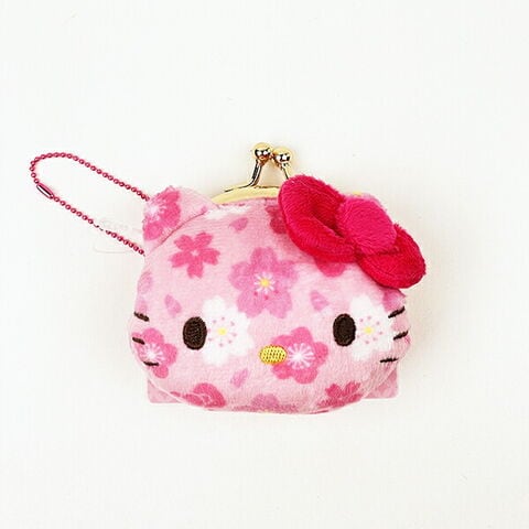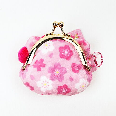 桜や梅などとそれぞれのキャラモチーフでデザインされた生地がカワイイ和雑貨シリーズです。ボールチェーン付きの小さながま口です。コインや目薬など入れたり、キーホルダーとしてカワイイ♪こちらはキティちゃんです。