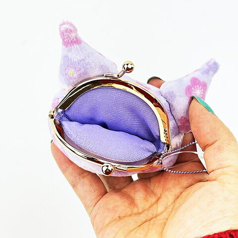 桜や梅などとそれぞれのキャラモチーフでデザインされた生地がカワイイ和雑貨シリーズです。ボールチェーン付きの小さながま口です。コインや目薬など入れたり、キーホルダーとしてカワイイ♪こちらはクロミちゃんです。