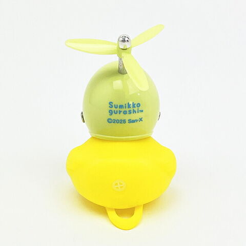 すみっコぐらし(ぺんぎん?)のハンドルに付けて使うマスコットです。プロペラは蓄光加工で、おしりを押すと音が鳴ってカワイイ♪サイクリングにカワイイをプラス♪ぜひ一緒におでかけしてみてください☆彡