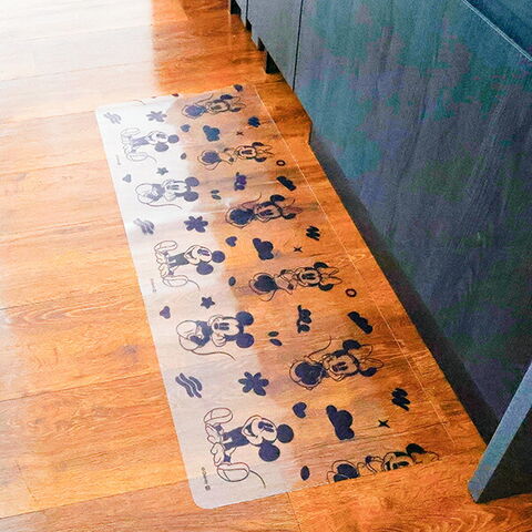 ディズニー(ミッキーミニー)の透明キッチンマットです。インテリアに馴染むクリア素材がイマドキでおしゃれ♪汚れてもサッと拭くだけなのでお手入れも楽々なのでママも嬉しい~☆シンプルながらも可愛いキッチンアイテムなのでキッチンに立つだけで気分もHAPPYになっちゃいます♪