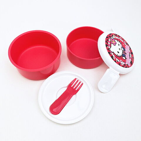 サンリオ ハローキティ 丸型ランチボックス2段(フォーク付き) お弁当箱 日本製 Sanrio
