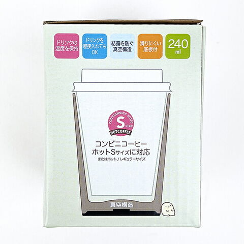 すみっコぐらしのコンビニコーヒーステンレスタンブラーです。コンビニエンスストア大手3社のサイズに対応。コンビニコーヒー(ホットSサイズ)をカップのまま入れて温度をキープ!ドリンクを直接入れてもOK。もちろん冷たいものも入れられます!オフィスや休憩のお供に♪【容量:240ml】【サイズ:直径7.6cm×高さ9.6cm】