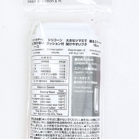 素材:フタ:AS樹脂(100度)、本体・スプーン:ABS樹脂(100度)、箸:メタクリル樹脂(100度)、クッション:シリコーンゴム(140度)