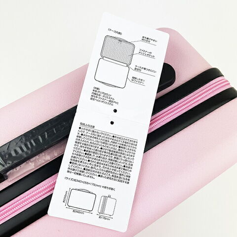マイメロディのハードキャリーオンケースです。キャリーケースの持ち手に通せる固定ベルトと持ち運びやすい持ち手付き☆ケース内側にはファスナー付のメッシュポケットがあって便利♪機内持ち込みOK!軽量で傷や衝撃からしっかり守る仕様なのが嬉しいポイント☆とっても可愛いデザインなのでぜひ旅行のお供にいかがですか?【容量:約15L】