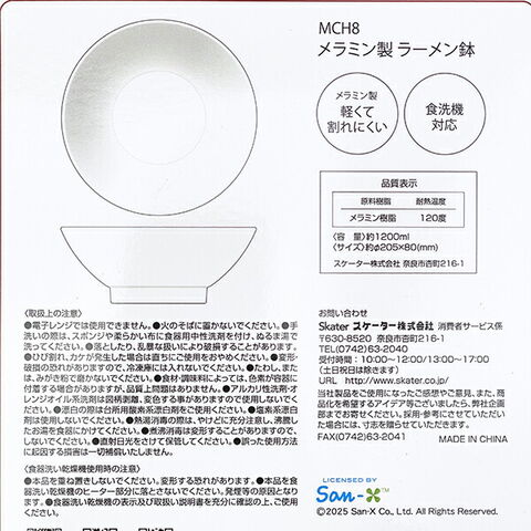 可愛い中華姿のリラックマのメラミンラーメン鉢です♪軽くて丈夫なメラミン製のラーメン鉢!お家で可愛い食器に盛っていつもよりももっと楽しむ事ができる♪また、同じシリーズでギョーザ皿もございます♪一気に揃えてリラックマと食卓を囲みませんか♪食洗機使用可◎※電子レンジ使用不可!