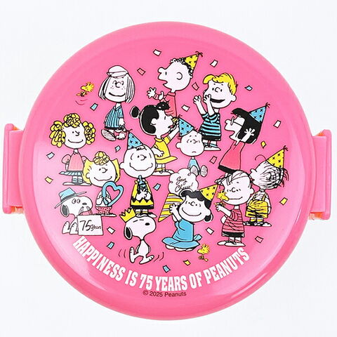 スヌーピー 抗菌丸型ランチボックス二段(フォーク付き) ピンク PEANUTS 75th Anniversary SNOOPY