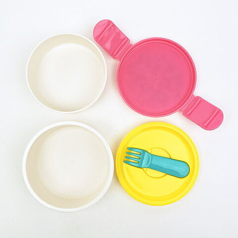 小さな丸型のシンプル2段お弁当箱です♪コンビニの丸型おにぎり1個が袋のまますっぽり入り、上段下段とも、ごはんがつきにくい「くっつかない加工」が施されています。内蓋収納フォーク(プラスチック製)付き。食べ終われば1段にコンパクトに収納できます!※ロック式ですが、パッキンは付いていませんので汁気のある食材はお避け下さい。フタ・シールフタ・フォークを外して電子レンジOK!食洗機使用不可となっております。【容量】上段230ml/下段270ml