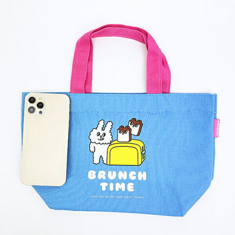バニータウンにある小さなコンビニエンスストアで働く、マヨくん、モグちゃん、マメちゃんたちの物語。愛嬌たっぷりの3匹に出会えたら、なにかワクワクするようなできごとが起きるかも……! いつだってみんなをハッピーな空気で包み込んでくれる癒しの存在の帆布ランチトートバッグです。お弁当箱を入れるのにぴったりなサイズ感◎サブバッグとしてもgood☆ちょっとしたお出かけに、おサイフやスマホ、カギなどの小物を入れてもOK♪バニーコンビニのランチアイテムなどと揃えれば、ランチタイムも楽しくなっちゃいそうです☆彡