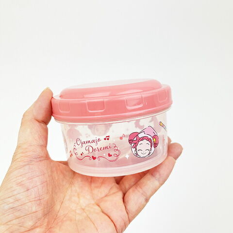 おジャ魔女どれみのフードコンテナです♪食材をつぶさずにふわっと盛れる♪まわして開閉するネジ式のフタで密閉性あり!(※パッキンは付いていません)MサイズにSサイズを入れることができるので、使わない時はコンパクトに収納できます♪お菓子入れや小物入れとしてもお使いいただけます♪食洗機・電子レンジ使用可◎【サイズ:S:約96×62mm、M:約112×70mm】【容量:M:400ml、S:230ml】