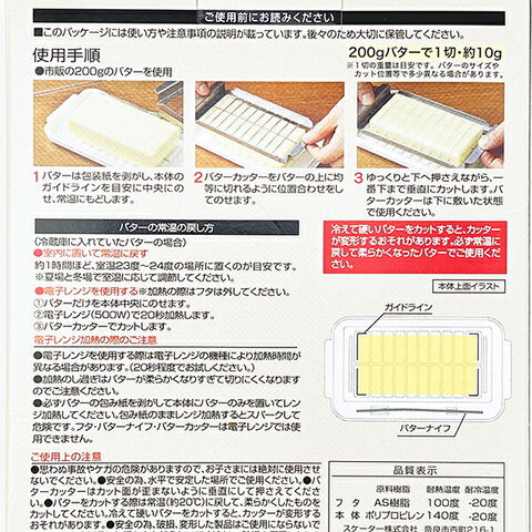 リラックマのステンレスバターカッター&ケースです♪市販のバターを一度にカットし、そのまま保存できるバターケース♪200gのバターを20等分(10g)に切り分けることができます。手を汚すこともなく、包丁やまな板も不要◎バターが取りやすい先割れナイフ付きなのも嬉しい☆彡※バターは必ず常温に戻してカットしてください。※食洗機・電子レンジ使用可◎