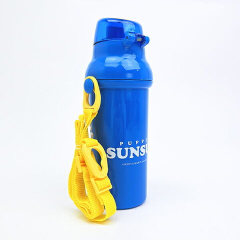 パペットスンスンの食器洗い乾燥機OKのプラスチック直飲み水筒です。プッシュ式オープンで簡単オープン!本体は氷が入れやすい広口タイプ??軽くて持ちやすい形状で肩にかけて持ち運べるショルダーベルト付きなので小さいお子様用にも◎名前シール入りなので、保育園や幼稚園などでも活躍すること間違いなしです☆彡食洗機使用可◎【容量:480ml】