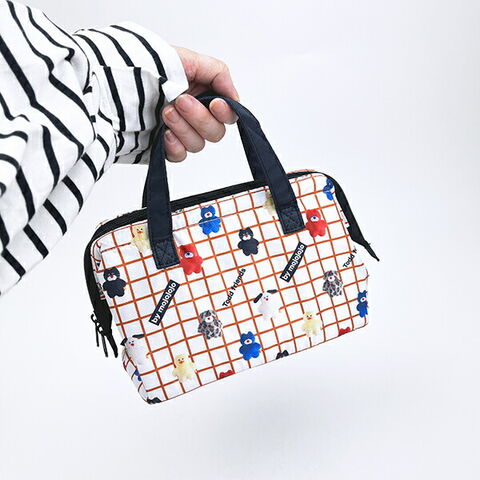 この子たちを知っていますか~?個性豊かなキャラクターたちが魅力の「mojojojo」のがま口型ランチバッグです。内側がアルミ蒸着仕様なのでランチバッグとしてはもちろん、ちょっとしたお出かけでのサブバッグや普段使いとしてサイフやスマホ、タオルなどを入れても便利♪開閉しやすいファスナー式で、保冷剤などを入れられるメッシュポケットが付いているのがgood◎mojojojoのランチアイテムなどと揃えれば、ランチタイムも楽しくなっちゃいそうです☆彡