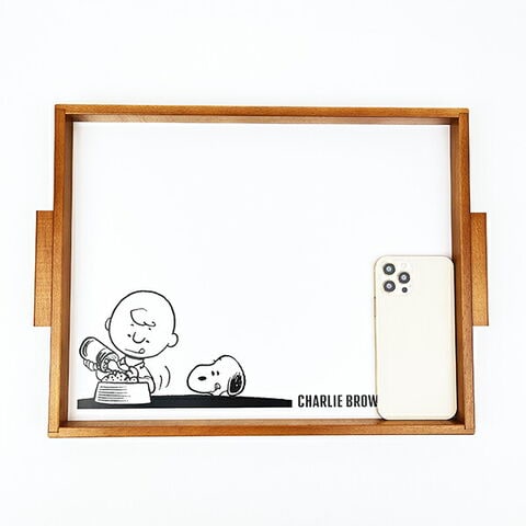 スヌーピーとチャーリーブラウンの木製のトレーです。キッチンやティータイムなどで大活躍すること間違いなし☆小物置きやリビングの整理整頓用にも◎置いておくだけでも可愛いのでインテリアとしてもおすすめです♪