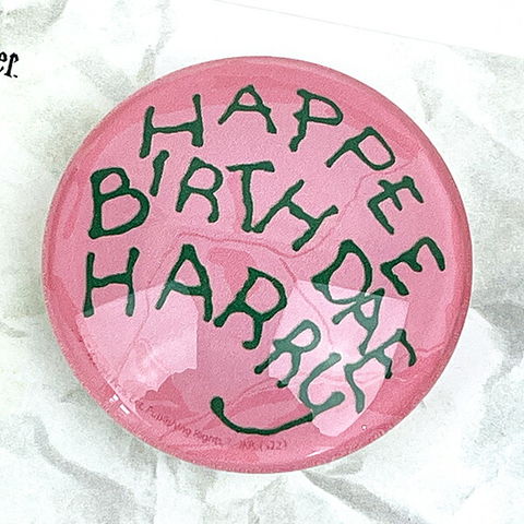 『ハリー・ポッターと賢者の石』のワンシーンで登場する、ハグリッドがハリーに贈った「HAPPEE BIRTHDAE HARRY」と書かれた手作りの誕生日ケーキのクリスタルマグネット!映画の中からそのまま出てきたような、リアリティのあるデザイン♪