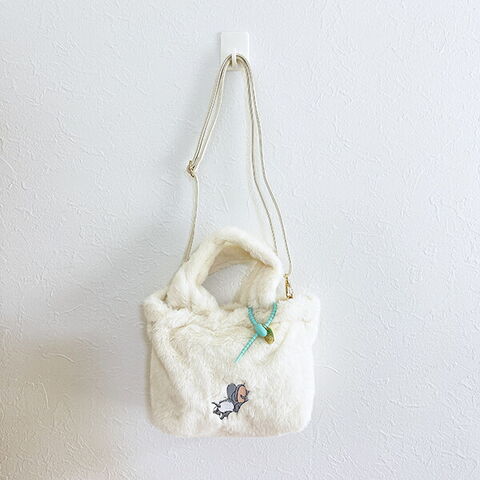 ふわふわの毛並みに顔をうずめるキャラクターが可愛いトムとジェリー(タフィー)のファートートバッグです。取り外し可能なショルダーベルト付きなので2WAYでお使いいただけます♪バッグの持ち手にはチャームや定期入れなどをつけられるパーツがついていて使い勝手◎ぜひ同シリーズのポーチと合わせてお使いください☆彡