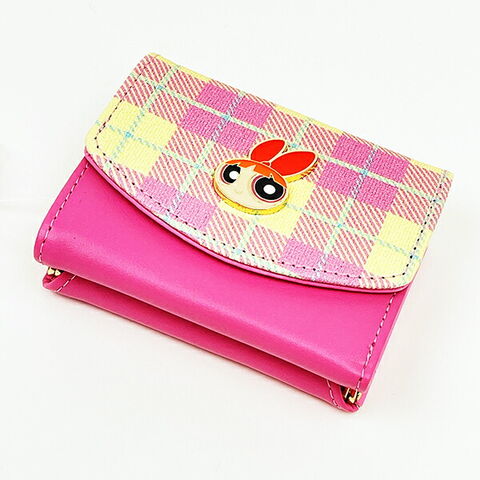 パワーパフガールズのミニウォレットです☆パステルカラーのチェック柄と、キラッと輝くキャラクターモチーフが可愛い♪お札・カードも収納できて、コインケース部分は小銭が取り出しやすいがま口仕様です。 お札入れ:1カードポケット:5コインケース:1