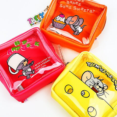 タフィーのイラストが可愛いスクエアポーチです。マチがあるので、コスメなど厚みがあるものも収納できちゃいます☆クリア素材なので、中身も一目で分かりやすいのがおすすめポイントです♪